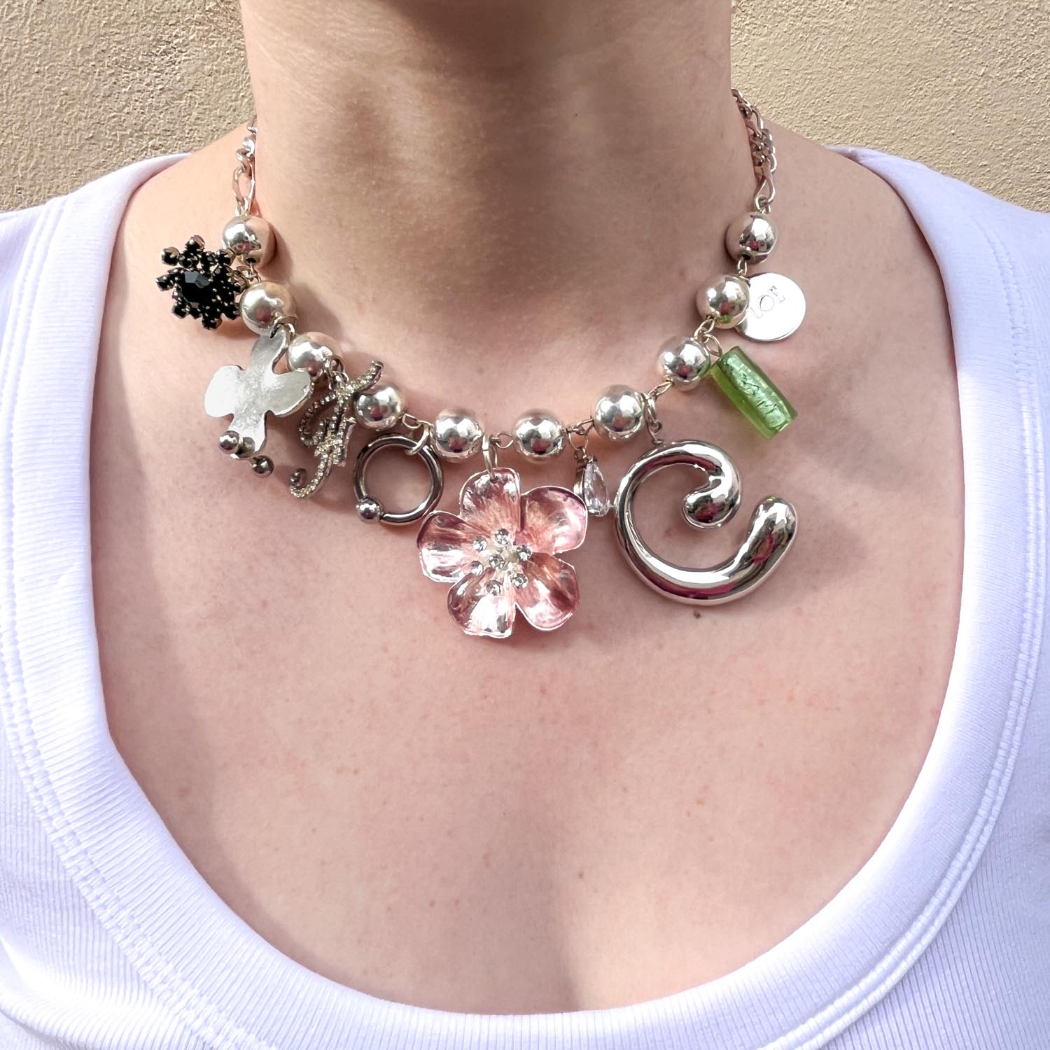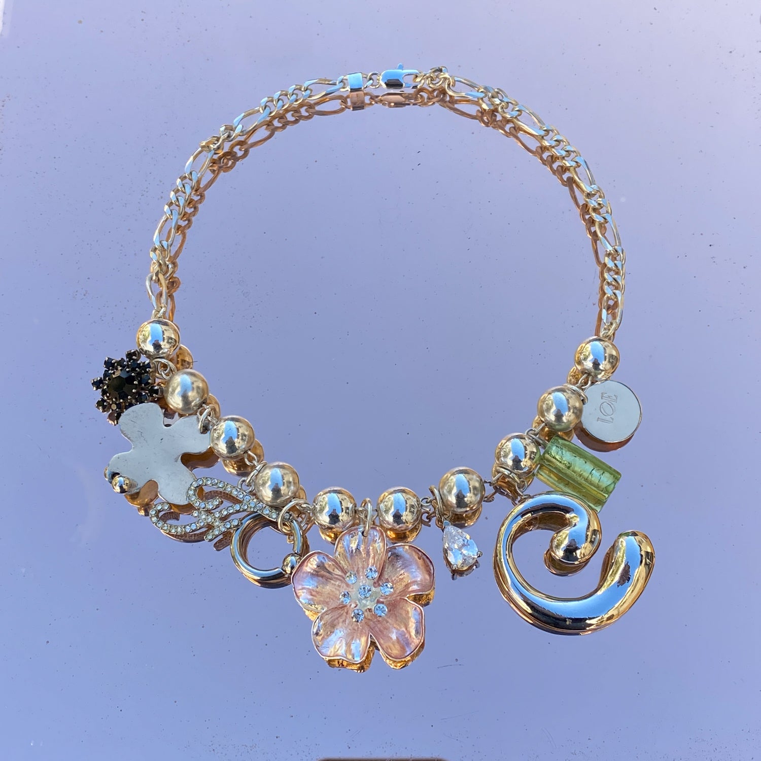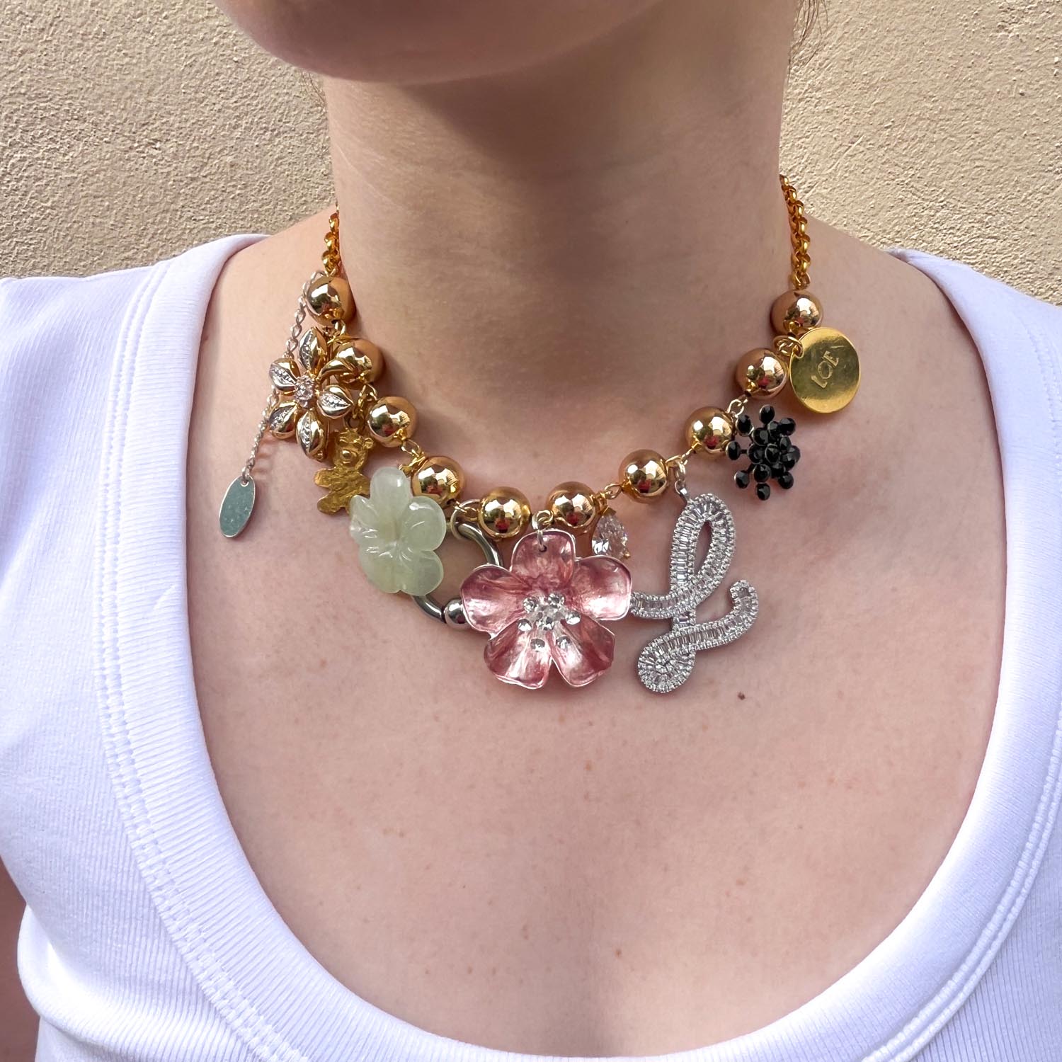 Chaque bijou de cette collection est une pièce unique, conçue une seule fois à partir de composants vintage upcyclés ou d’éléments contemporains rares.
