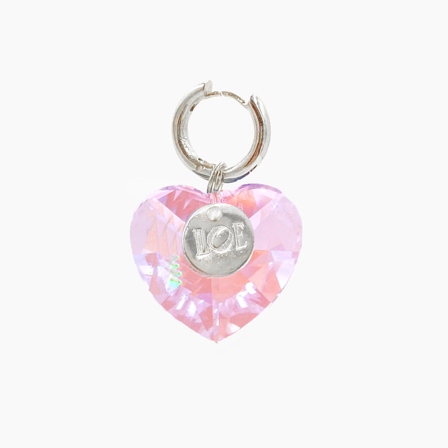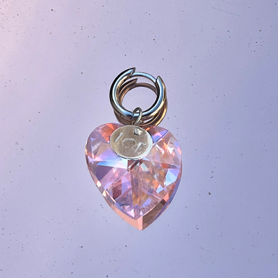 Cette boucle est composée d'un coeur en cristal Swarovski provenant d'un stock dormant. Le pendentif est de couleurs rose avec des reflets très brillants.