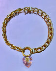 Ce cristal vintage, issu d’un stock dormant, confère à la pièce tout son éclat et son unicité. Le fermoir mousqueton, également en laiton plaqué or, complète l’ensemble avec élégance.