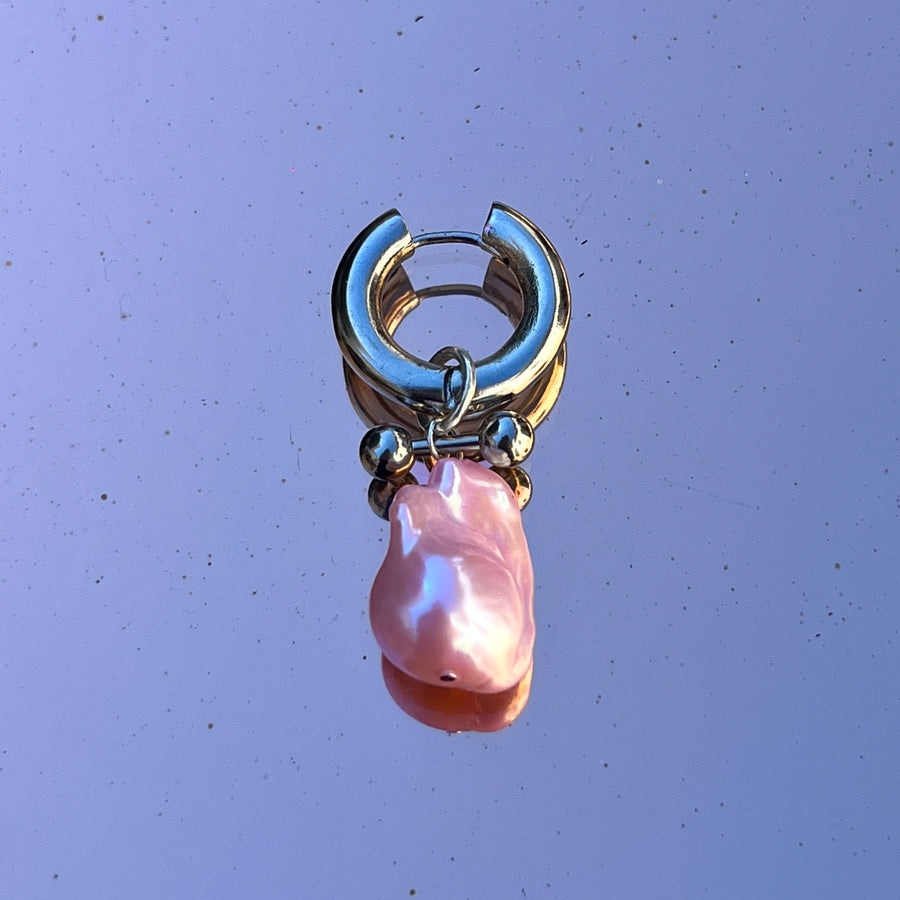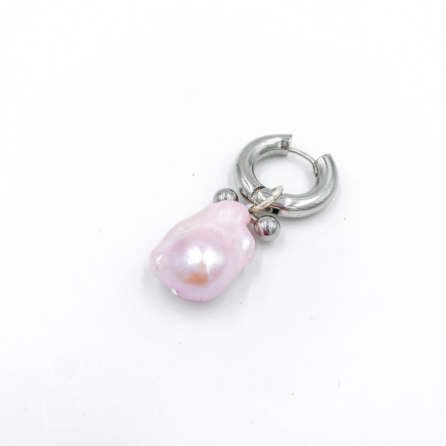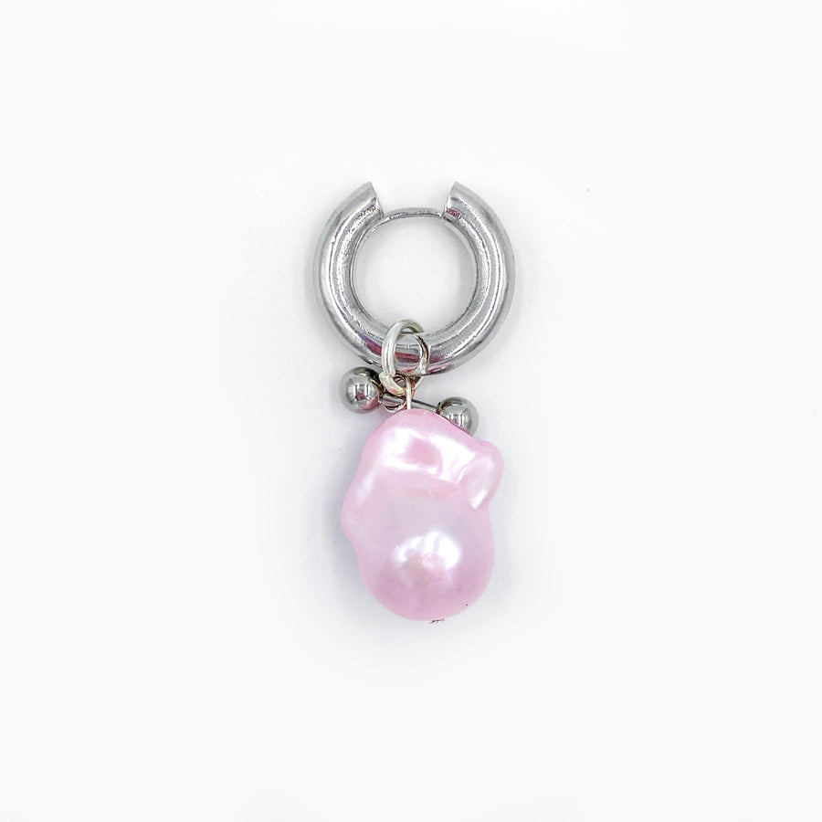 La boucle d'oreille BAROQUE PINK argentée est composée d'une véritable perle d'eau douce, en nacre rose et d'un piercing.