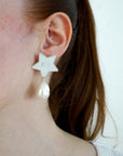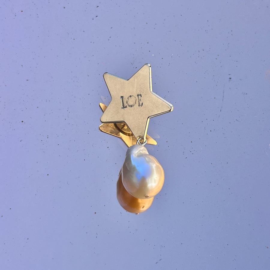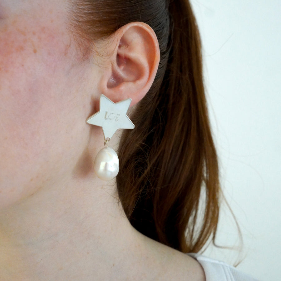 Cette boucle d’oreille en argent 925 est en forme d'étoile (gravure réalisée à la main), sublimée par une perle en nacre suspendue . Dotée d’un fermoir à clous, elle se porte seule ou en association pour un jeu d’asymétrie audacieux.